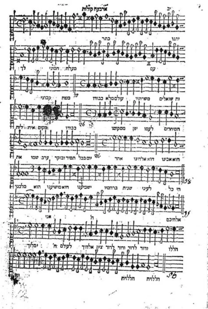 Hinsichtlich seiner synagogalen Musik ist Rossi im Gegensatz zu seiner sehr modernen Instrumentalmusik allerdings viel konservativer, was auch mit der Schwierigkeit der Vertonung der hebräischen Sprache zusammenhängt, dafür gab es bis dahin keine Vorbilder. Dies stellte ihn (und uns) nämlich vor die spannende Frage, wie man Musik, die von links nach rechts gelesen wird, mit Text verbindet, der von rechts nach links geschrieben ist.