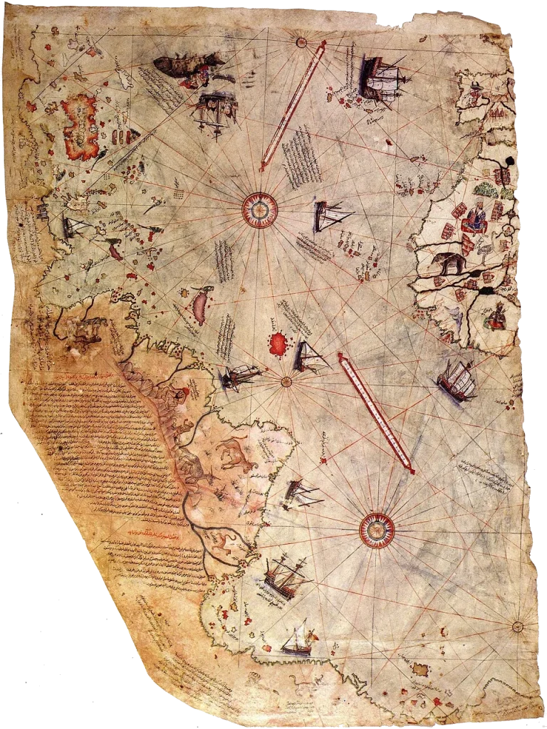 Aber erst mit der kopernikanischen Wende im 15. Jahrhundert tauchten erste Globen in Europa auf; der älteste erhaltene Globus stammt wiederum von 1492, Martin Behaims Erdapfel im Germanischen Nationalmuseum in Nürnberg (naturgemäß noch ohne Amerika). Die Vermutung, Indien müsse aufgrund der Kugelform der Erde auch auf dem Seeweg nach Westen erreichbar sein, brach sich Bahn und wurde von Kolumbus letztlich bestätigt. Die erste Weltkarte, die beide Amerika zeigt, ist eine osmanische Karte von 1513 (Piri Reis).