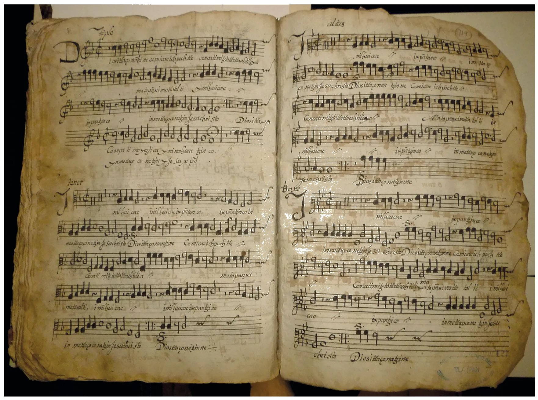 Den einzigen Rest eingeborener Musikkultur unseres Programms finden wir bei Gaspar Fernandez in dem Stück „Eso rigo e repente“, das in seiner lebendigen und oft überlagernden Rhythmik noch den Einfluss der ursprünglichen Volksmusik erahnen lässt. Allerdings eher der schwarz- afrikanischen als der lateinamerikanischen. Sein Villancico „Xicochi“ schrieb er in der Sprache der Nahua-Bevölkerung Mexicos. Die Mehrheit seiner Villancicos ist im Oaxaca Codex enthalten.